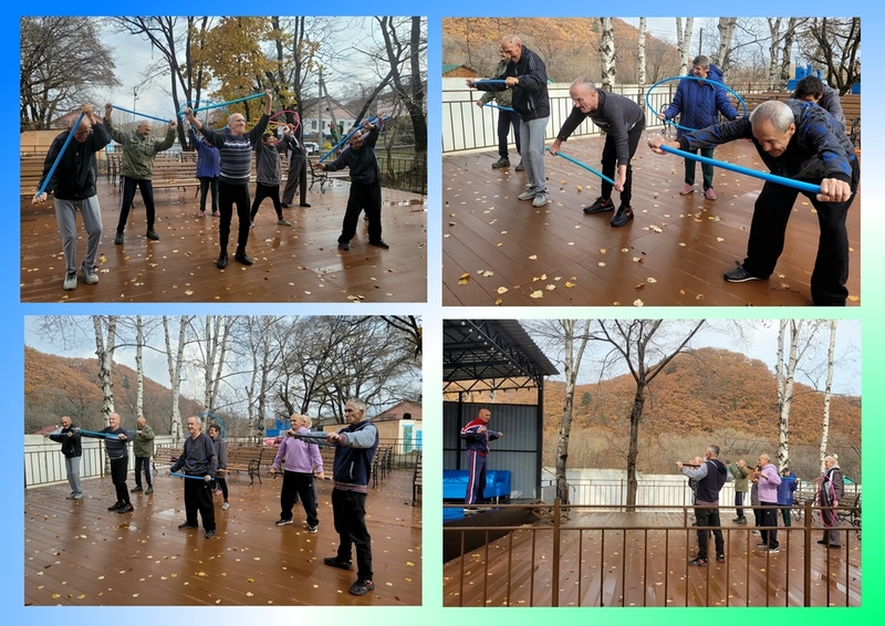 Участники активно выполняли дыхательные упражнения и элементы лечебной физкультуры. Занятия проходили на свежем воздухе весело и непринужденно, многие отметили улучшение настроения и самочувствия.