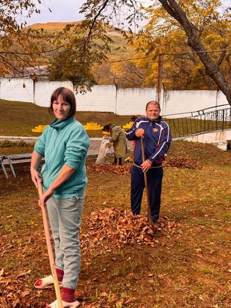 Проживающие активно участвовали в процессе, собирая листья стараясь сделать территорию более аккуратной. Это помогло не только очистить пространство, но и способствовало социализации и улучшению настроения участников. После завершения уборки территория выглядела значительно лучше: все дорожки и площадки были свободны от листьев. Проведение таких мероприятий полезно не только для поддержания чистоты, но и для повышения активности проживающих. Уборка территории от листьев оказалась успешной и полезной как для практического улучшения состояния интерната, так и для формирования положительного настроя среди его жителей.