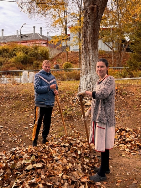 16 октября для эффективной уборки была организована группа из числа проживающих, желающих участвовать в процессе. Перед началом работы был проведен инструктаж по технике безопасности и правила работы с инструментами. Также были подготовлены необходимые инструменты: грабли, мешки для мусора и перчатки.