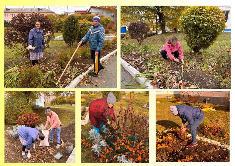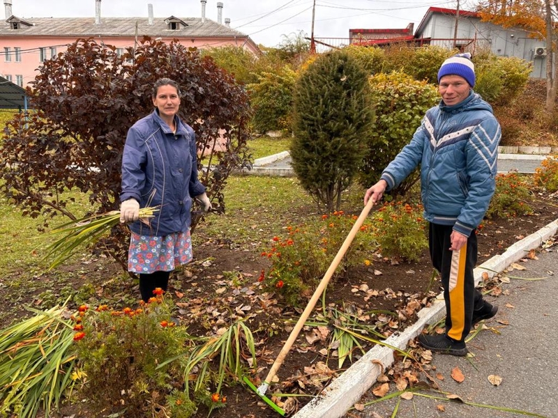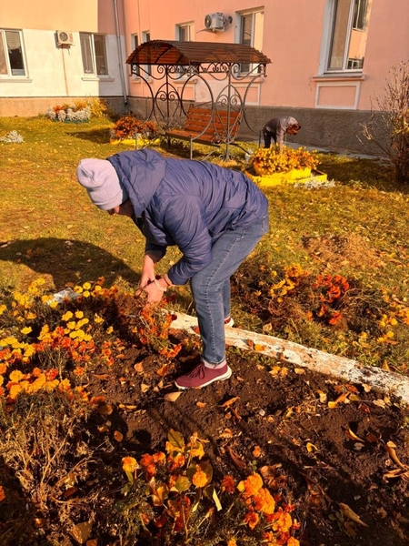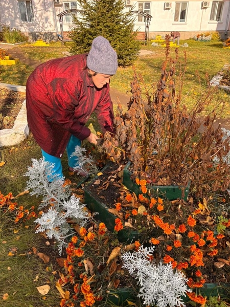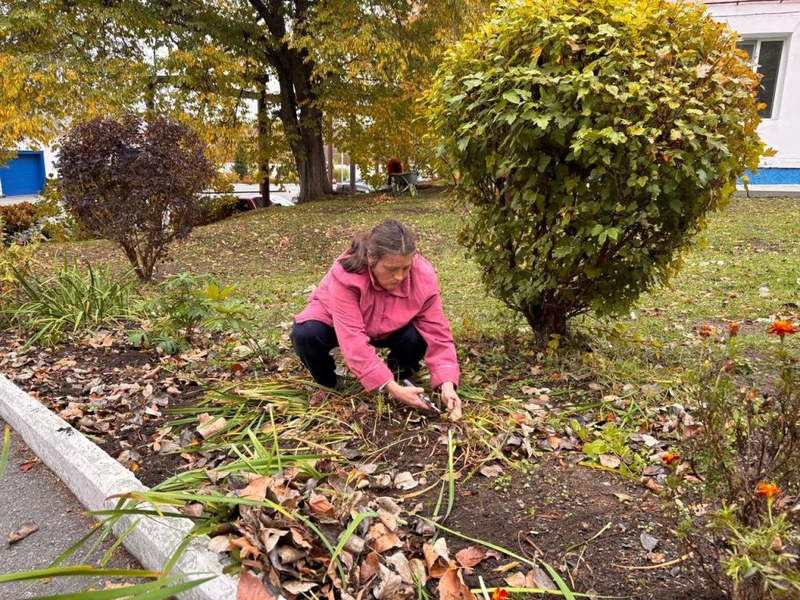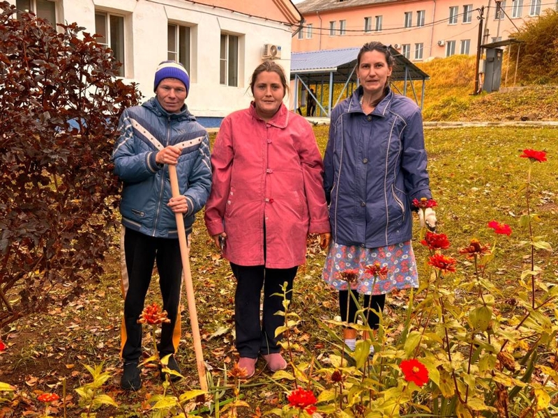 Проживающие интерната убрали увядшие растения, провели обрезку цветущих и многолетних растений, собрали мусор, листья и другие растительные остатки, что способствовало улучшению внешнего вида клумб и окружающей территории.