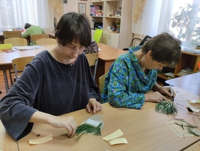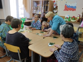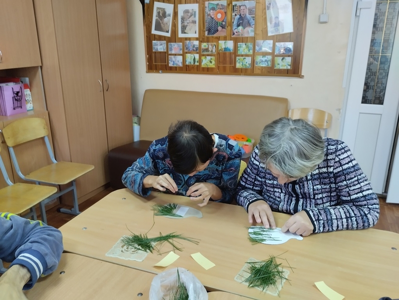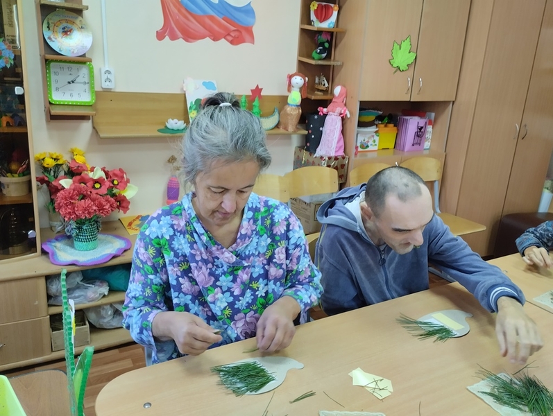 В рамках программы «Мастерская добрых дел» в учреждении было проведено занятие по декоративно - прикладному творчеству. Проживающие выполняли аппликацию, где использовали различный материал: воздушный пластилин для яблок, а из природного материала - иголки сосны. Участников занятия так увлек творческий процесс, что они вложили в свои поделки все умение и фантазию. В результате у каждого получилась яркая осенняя композиция. Работа сопровождалась интересной беседой о приметах осени и отгадыванием загадок об осенней природе.