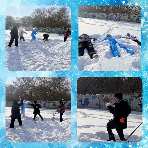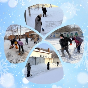 Начали день с уборки снега, создавая чистое пространство вокруг себя. После активной работы пришло время веселых забав – мы играли в снежки, смеялись и радовались снежной погоде.