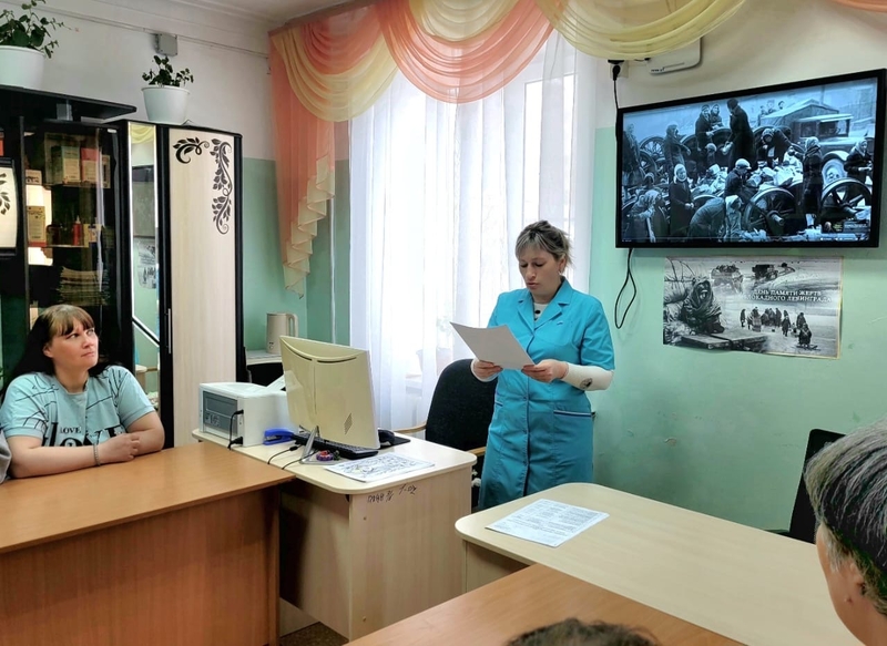 Анна Ивановна рассказала лекцию о том, как началась осада Ленинграда, о жизненных условиях, в которых находились жители города, о героизме защитников и волонтеров, сыгравших ключевую роль в выживании населения. После лекции, все присутствующие посмотрели документальный фильм который детально освещал трагические события.