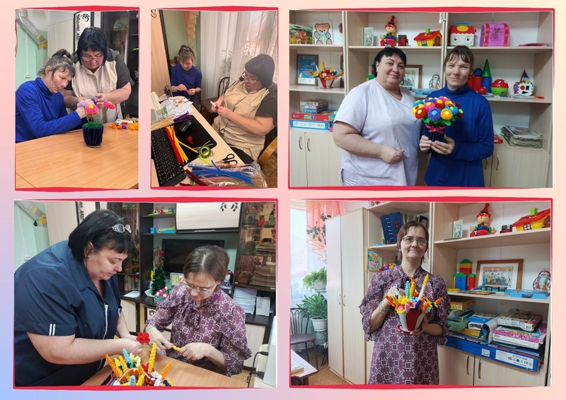 Надежда Кондрашова и Екатерина Макарова изготовили цветы из синельной проволоки. Работа была направлена на развитие мелкой моторики, творческого мышления и эмоциональной вовлеченности. Задание выполнено в полном объёме, букеты получились яркими и эстетичными. Занятие способствовало улучшению настроения, развитию координации движений и творческих способностей. Мероприятие прошло успешно, цель достигнута.