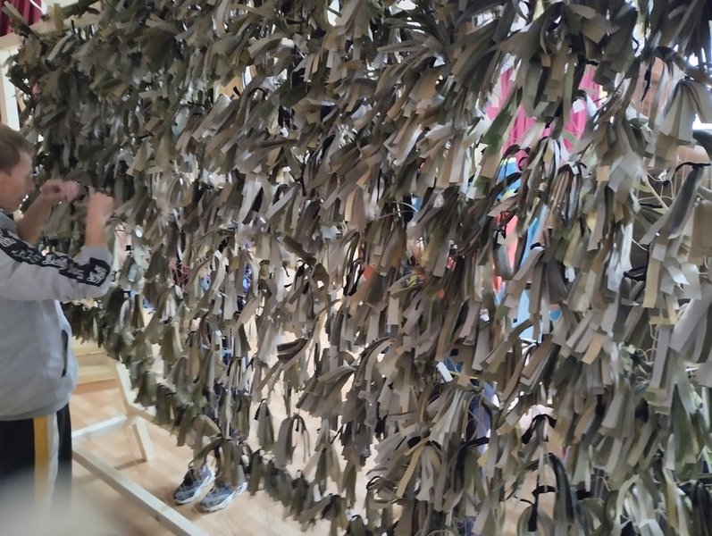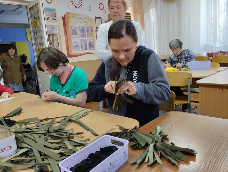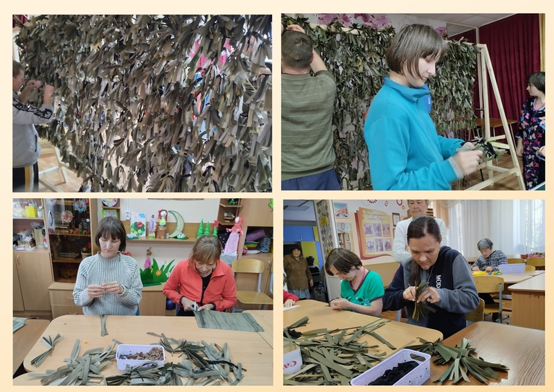 При поддержке волонтерской группы «Поможем СВОим» ООО «Росток» в нашем учреждении приступили к плетению маскировочных сетей. Проживающие с пониманием откликнулись принять участие в процессе плетения. Технология плетения незамысловата, но требует важных тонкостей. В каждый привязанный к сети лоскутный пучок проживающие вкладывают особый смысл. Ведь эта возможность спасти чью-то жизнь, спрятать и укрыть от врага бойца, чтобы он вернулся домой живым
